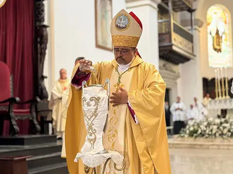 En la Misa Crismal, celebrada el pasado sábado 28 de marzo en la iglesia Sagrario Catedral, el obispo Lisandro Rivas consagró y bendijo los óleos que se usan durante todo el año en cada rincón de la Diócesis de San Cristóbal.