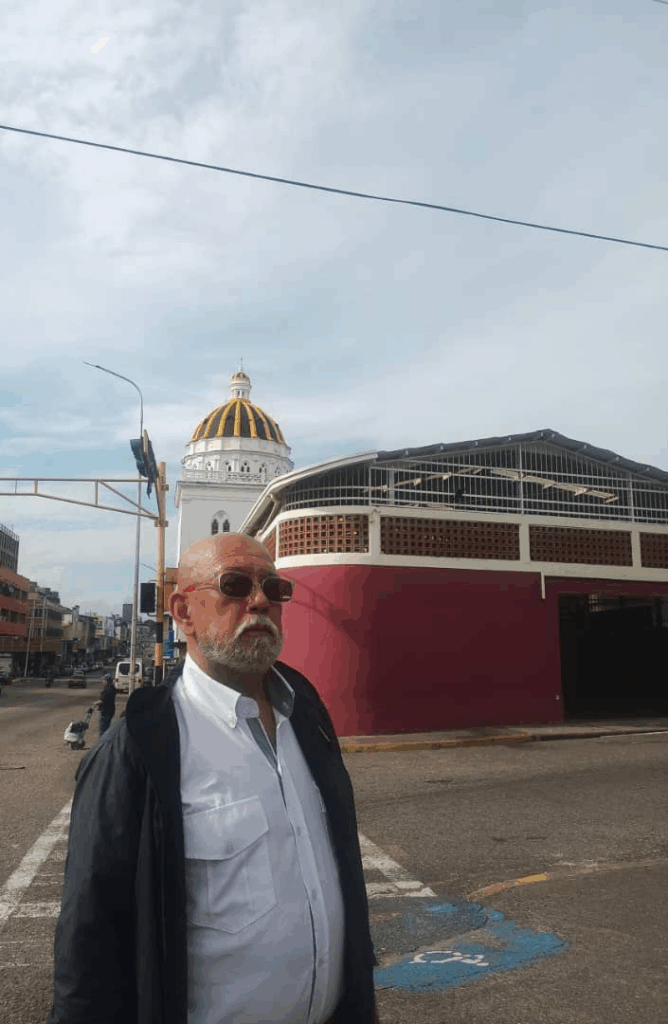 El arquitecto Walter Durán observa las dos cúpulas de la iglesia desde la esquina de la calle 14. (Foto/ Andrea Guerrero)