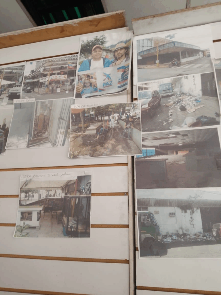 — Nosotros, aquí, en la comunidad tomamos la iniciativa como colectivo de gobierno comunal de recuperar el espacio para darle un uso comunal, un uso más para los ciudadanos y las ciudadanas que transitan por aquí — expresa desde su escritorio, señalando unas fotos que se encontraban en un muro detrás de él, en donde se pueden apreciar diferentes ángulos del galpón vacío.