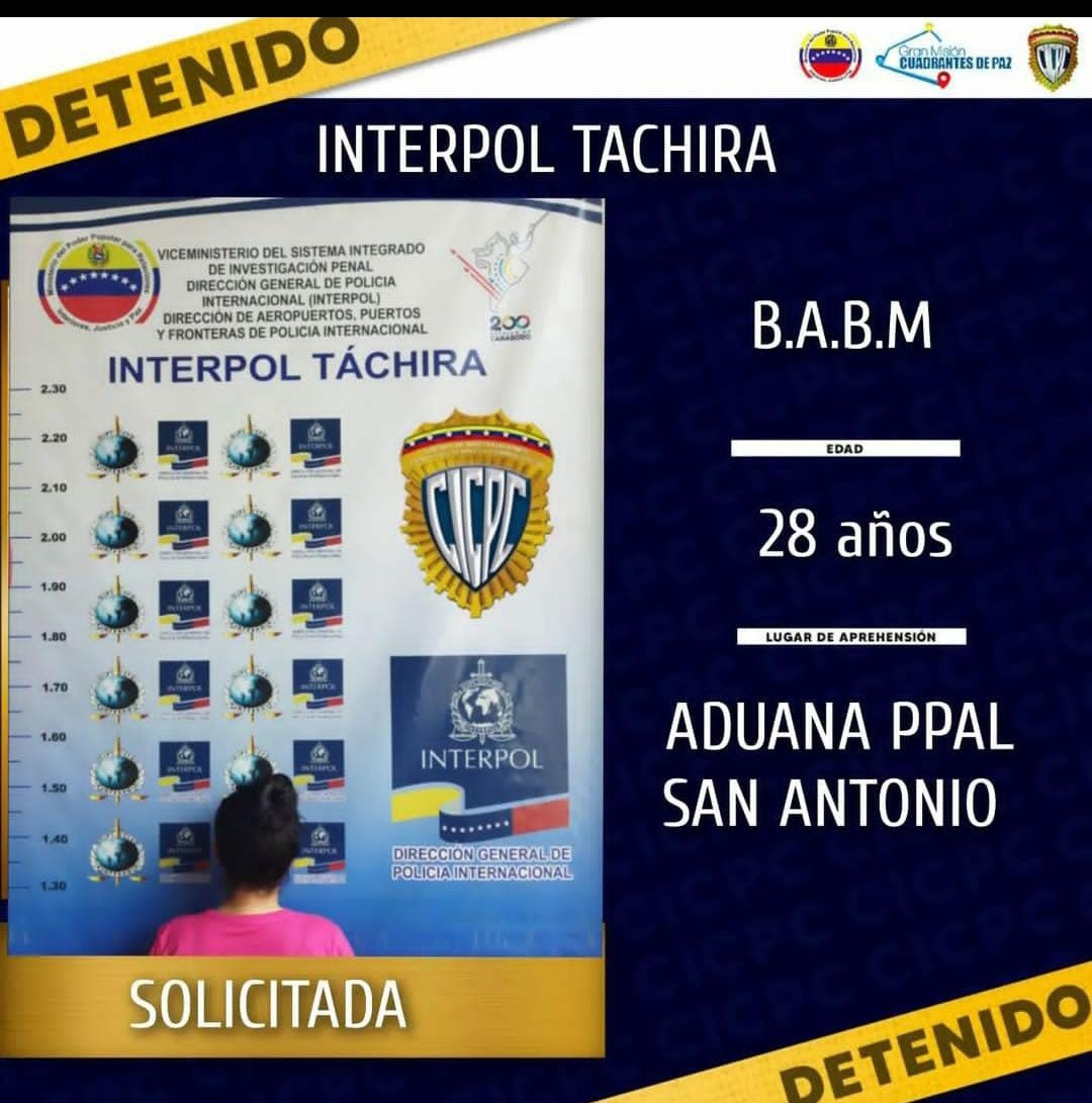 La ciudadana fue capturada por Interpol en la aduana Principal de San Antonio del Táchira