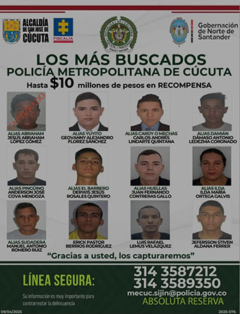 La foto de Manuel Antonio Romero, alias «Sudadera», de nacionalidad venezolana, estaba con otras 11 en el cartel de los más buscados del Área Metropolitana de Cúcuta (AMC).