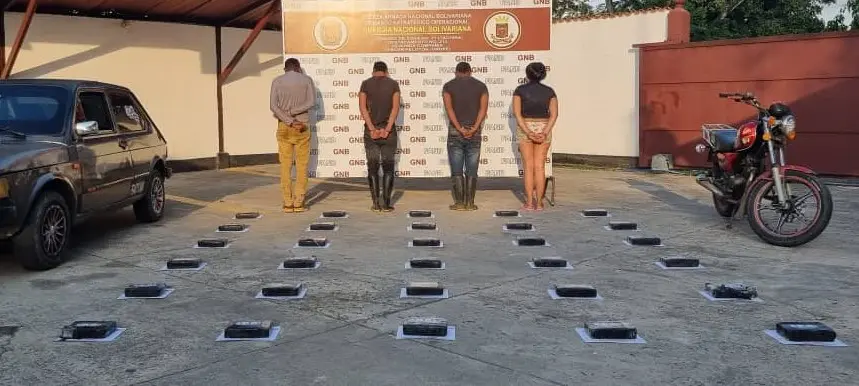 Cinco supuestos integrantes de un grupo dedicado al tráfico de estupefacientes, entre los cuales se encuentra una adolescente, fueron apresados por efectivos de la Guardia Nacional Bolivariana en la localidad de Orope, municipio Francisco Javier García de Hevia, debido a que en partes secretas del vehículo que tripulaban transportaban un alijo conformado por más de 32 kilos de cocaína que desde territorio colombiano intentaban llevar a la población de El Vigía, estado Mérida.
