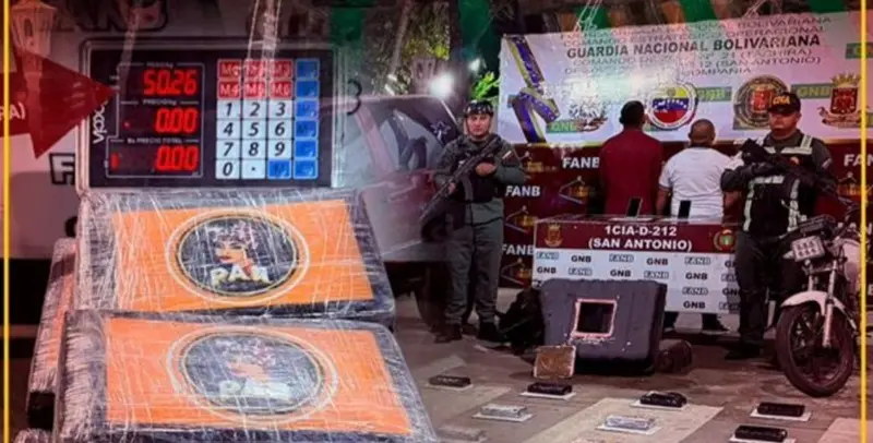 En total, los funcionarios de la Guardia Nacional Bolivariana (GNB) incautaron 46 panelas de cocaína ocultas en el tanque de gasolina del vehículo en el que se movilizaban.