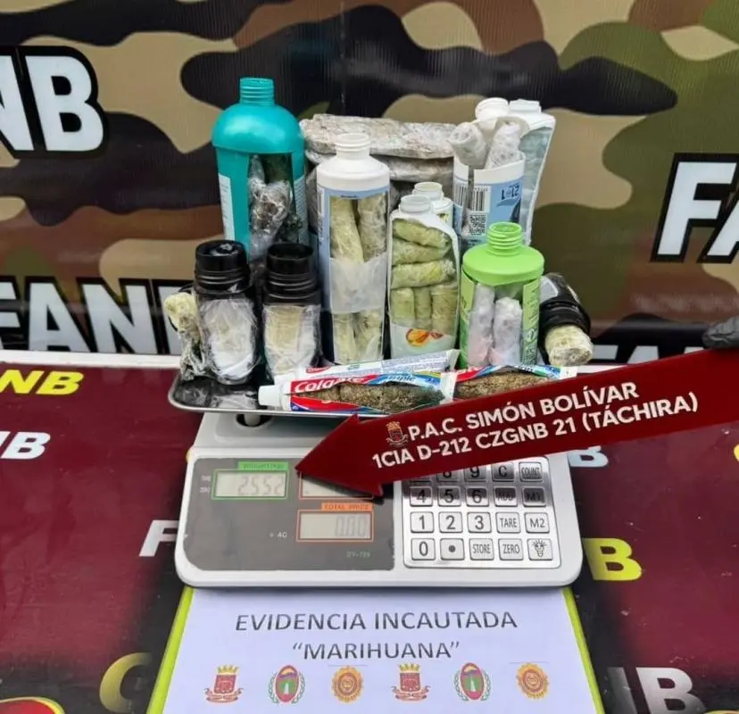 Al sujeto, proveniente de Colombia, le hallaron las dosis de marihuana en el interior de 16 envases de diversas marcas y en un par de zapatos, según el reporte de la Guardia Nacional Bolivariana (GNB), encargada de la incautación.