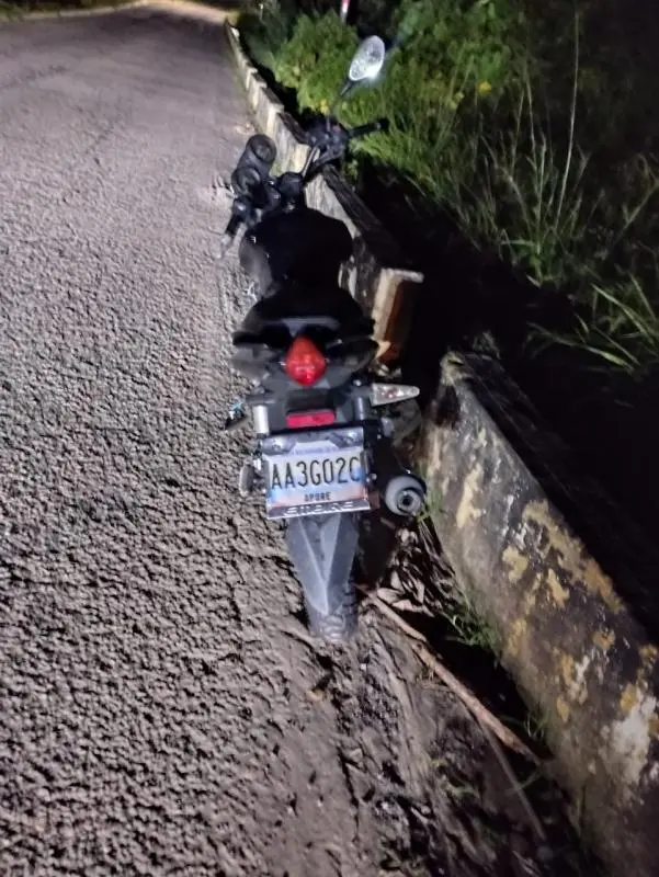 El hecho ocurrió ayer sábado 24 de enero, involucrando una motocicleta marca EK Arsen 2 color negro, con placas A3G02C, según organismos competentes, el conductor perdió el control y volcó sobre la vía.