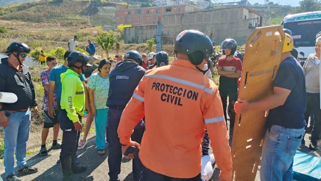 En la avenida Francisco de Cáceres, ubicada en el municipio Jáuregui, este viernes se registró un accidente de tránsito tipo derrape que dejó como saldo a dos personas lesionadas, movilizando de inmediato a los efectivos de protección civil de montaña alta.