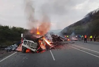 El primero de los siniestros viales ocurrió en la madrugada del sábado 18 de abril, cuando un vehículo Foton 17-21 que transportaba hortalizas con 11 tripulantes a bordo, chocó de frente contra un F-350 cargado de carbón vegetal. Tras el impacto ambas unidades se incendiaron. Las 8 víctimas fatales quedaron calcinadas. Sobrevivieron cinco personas.