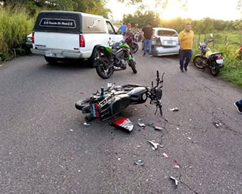 Un muerto y un herido, dejó una colisión entre una motocicleta y un carro en el sector Caño Azul de La Tendida, municipio Samuel Darío Maldonado.