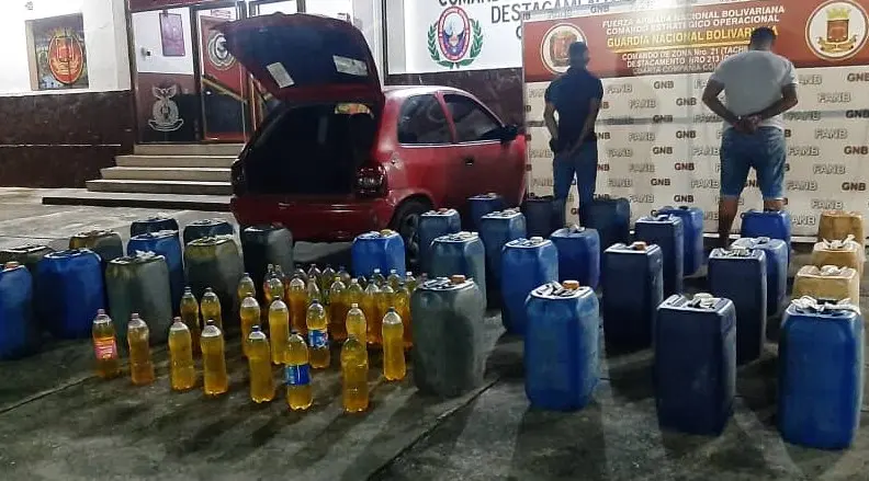 Dos hombres, que en un vehículo de uso particular trasportaban novecientos litros de gasolina supuestamente destinada al contrabando de extracción y venta a precios especulativos,…